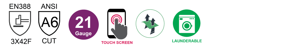 21 gauge knitting technology makes it one of the thinnest and finest cut level F / A6 glove in the world.