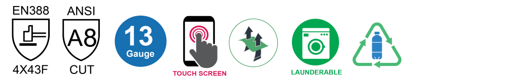 ANSI cut level A8 glove for great cut protection.
